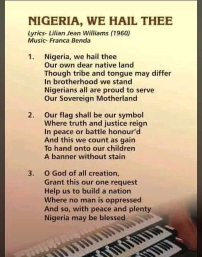 The Senators passed a bill to compel us to go back, adopt and sing the old national anthem, the President assented to it. It is now a law. The distinguished Senators in collaboration with the President, might have seen or heard what we, the undistinguished Nigerians neither saw nor heard. The bill, I guess was one of their continued ingenious searches for a new prosperous Nigeria.