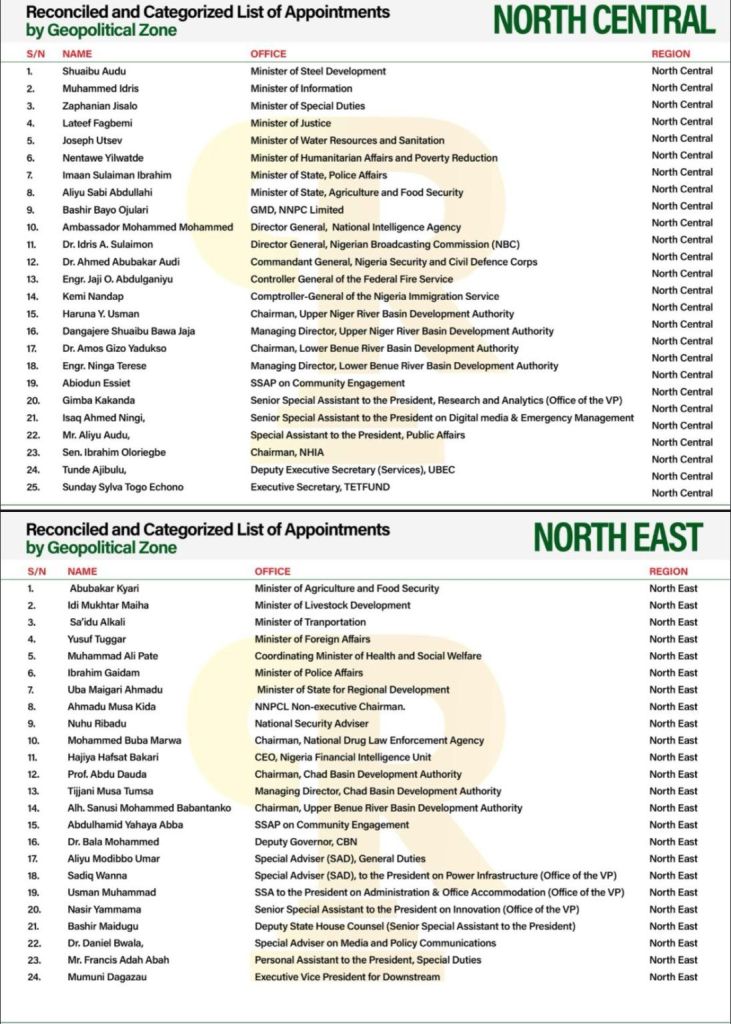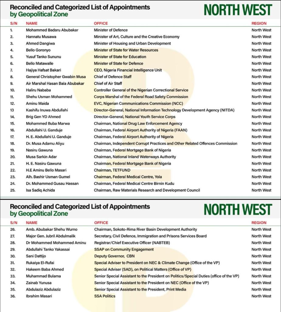 This list of appointments was released by Sunday Dare, Special Adviser on Information and Strategy.