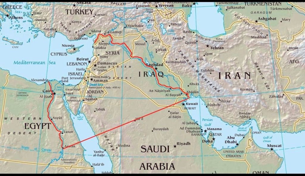 In biblical texts, particularly in Book of Genesis and Book of Exodus, the boundaries of this land are sometimes described broadly as stretching “from the river of Egypt to the great river, the Euphrates.” Because of this wording, some later interpretations produced maps showing a very large region extending across parts of what are today Israel, Palestine, Lebanon, Syria, Jordan, and portions of Iraq and Egypt.